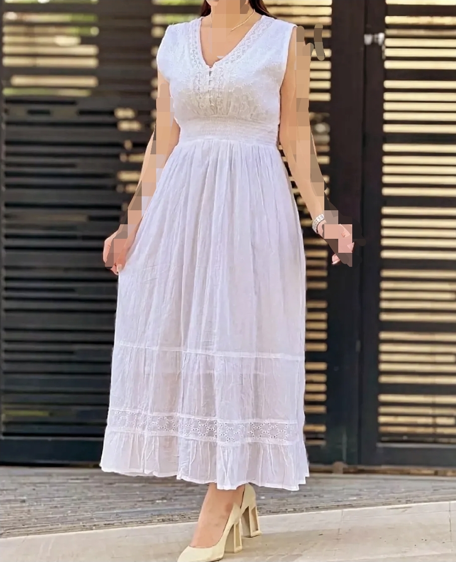 پیراهن زنانه نخی سنتی طرح میلان