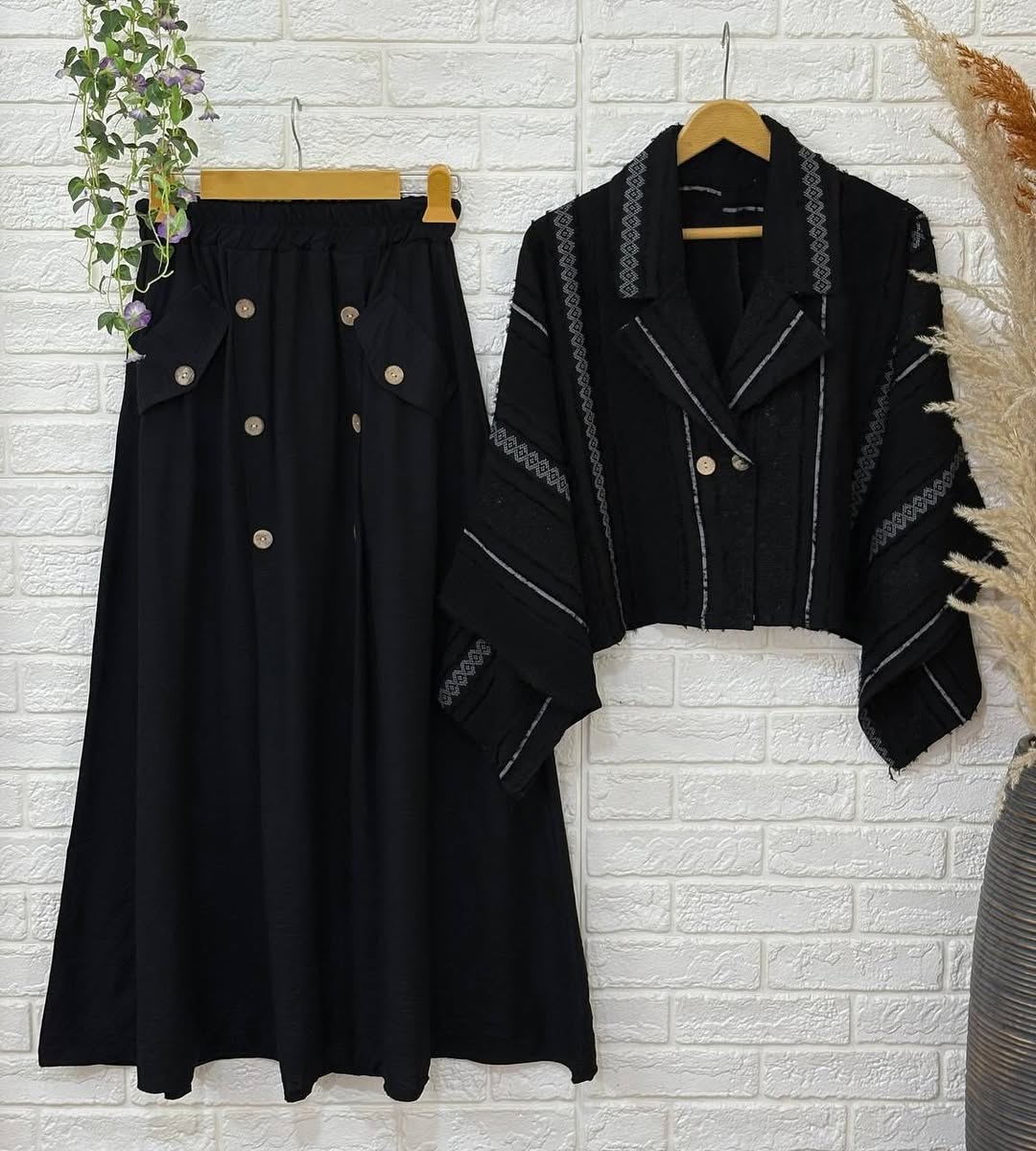 ست کت و دامن زنانه طرح نواری