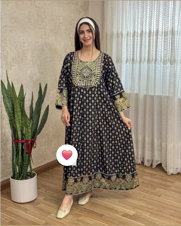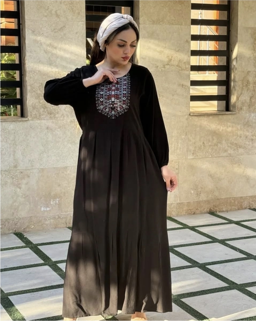 پیراهن زنانه سلن خامه دوزی هندی آستین بلند