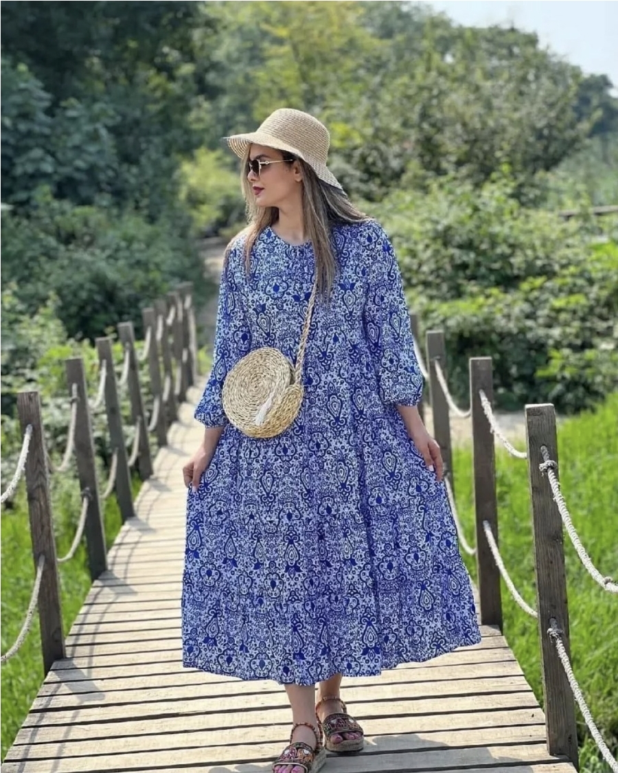 پیراهن زنانه نخی چاپی آیدا