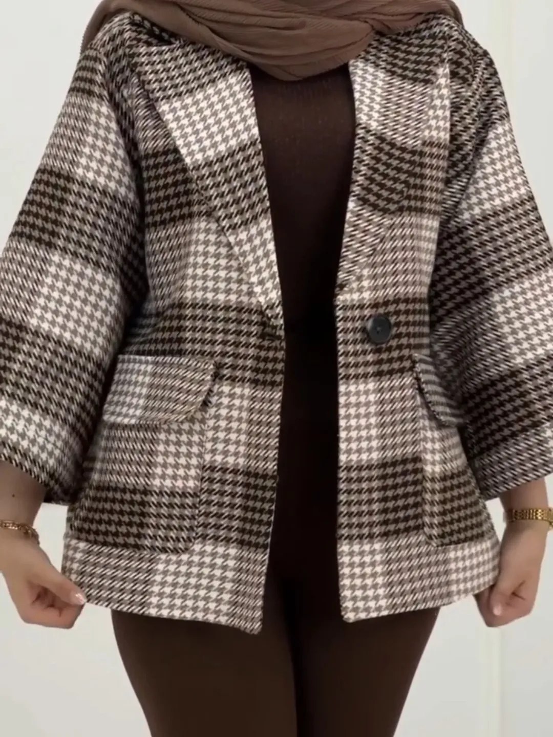 مانتو کفتان زنانه طرح چهار خونه پشمی آراد