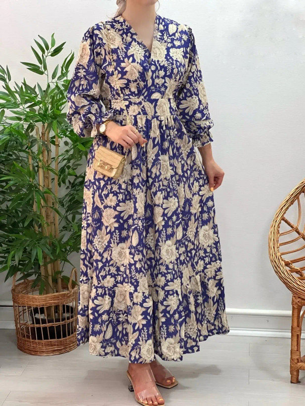 پیراهن زنانه فلور طرح یقه چپ و راستی نسترن