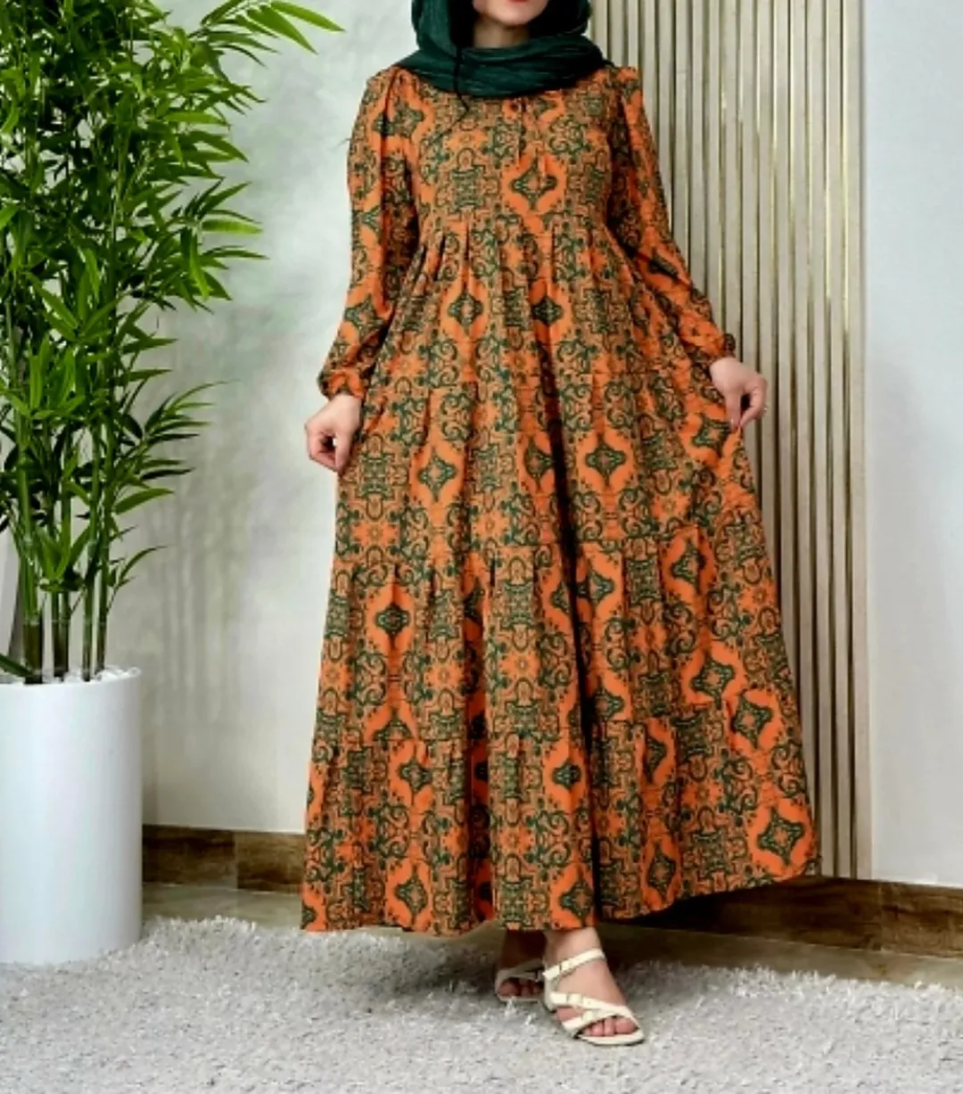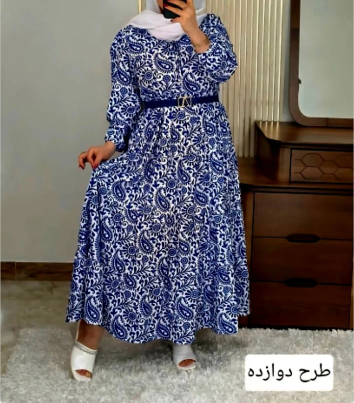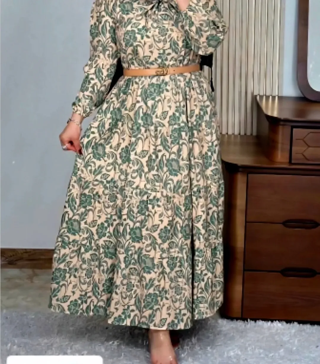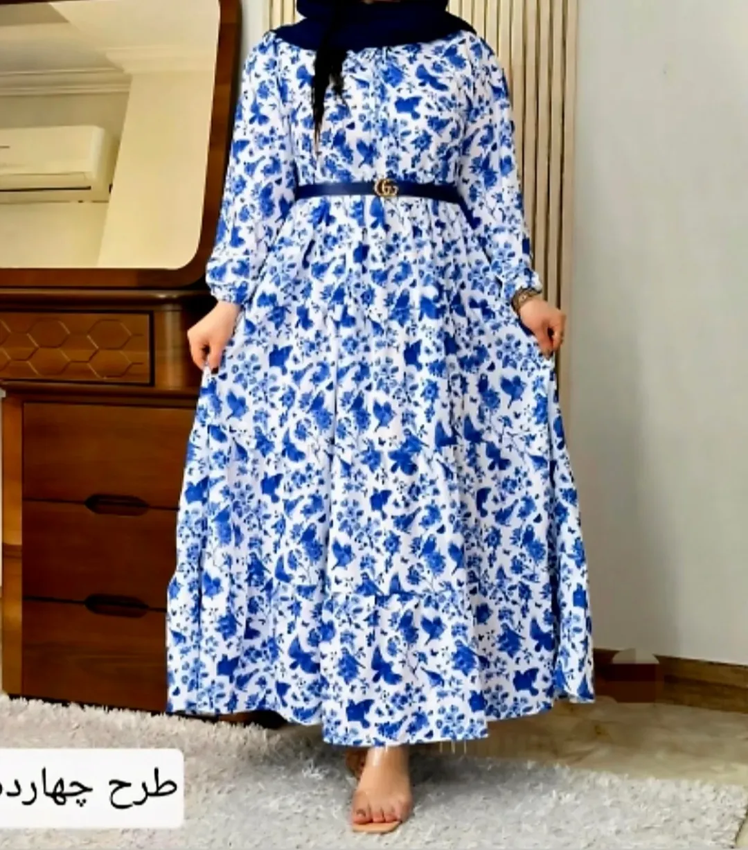 این لباس از جنس فلور سوپر سافت بدون آبرفت و چروک و رنگ رفت ساخته شده است. قدکار ۱۴۰ سانتیمتر و دارای کمربند از جنس خودکار میباشد.