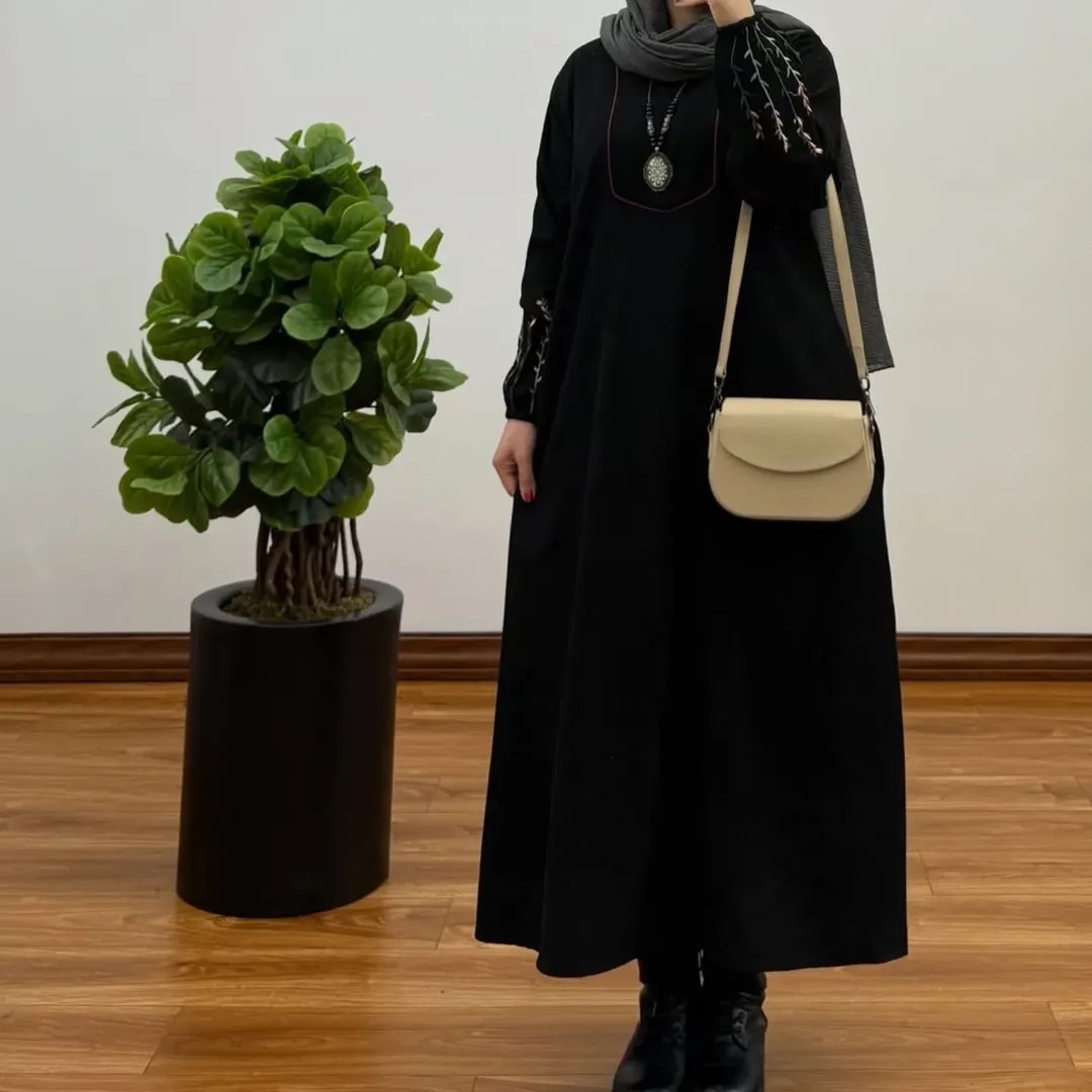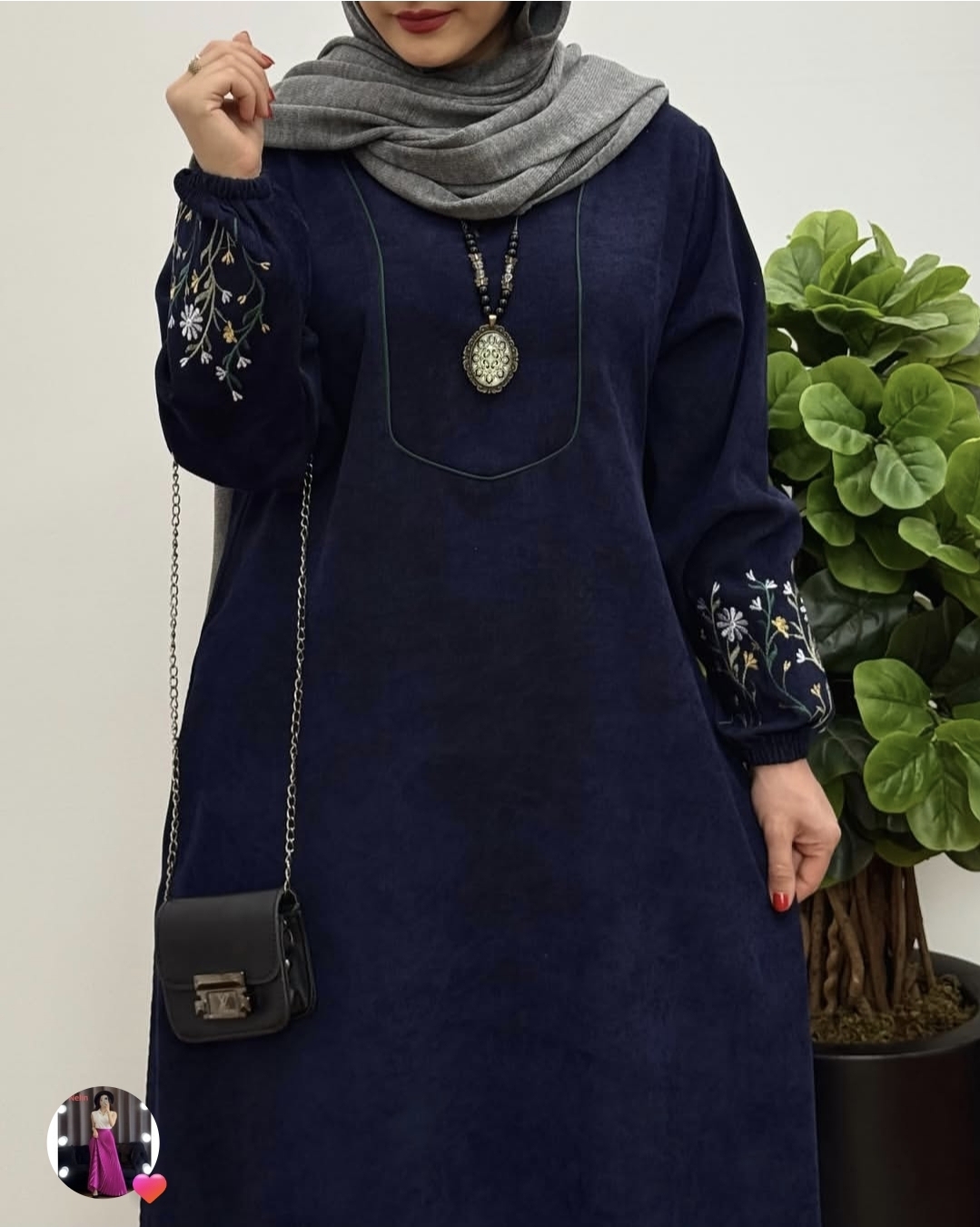 پیراهن مانتویی زنانه مخمل کبریتی طرح گلدوزی گندم