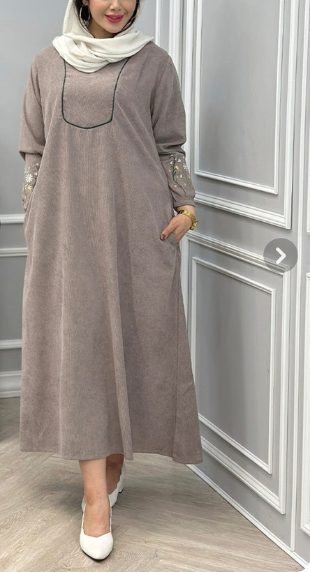 پیراهن مانتویی زنانه مخمل کبریتی طرح گلدوزی گندم