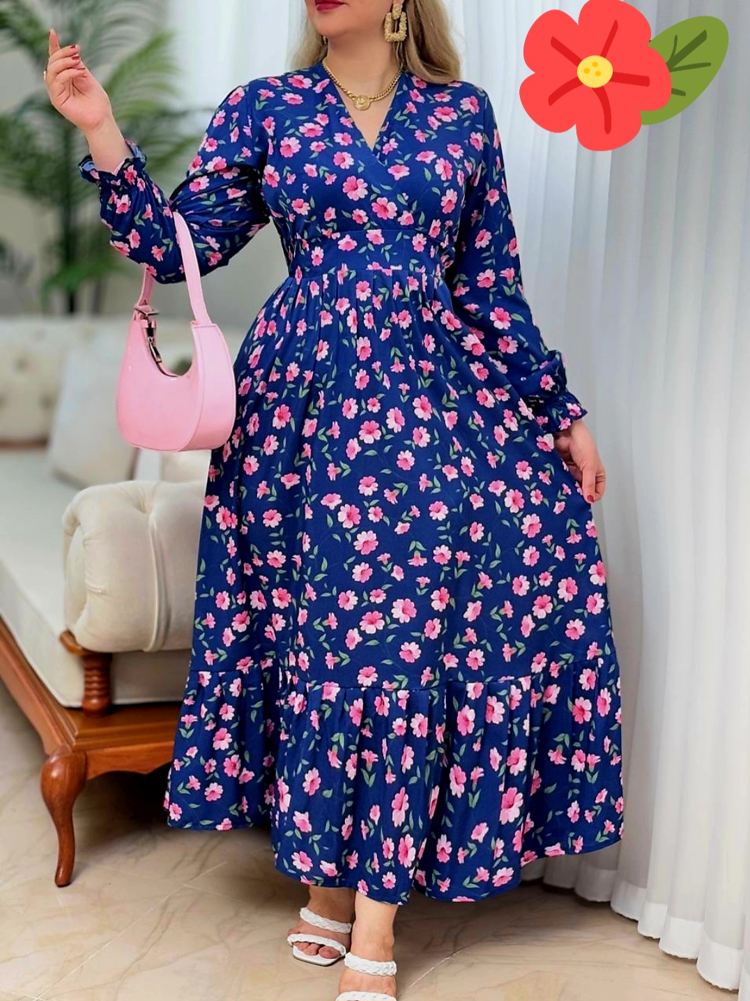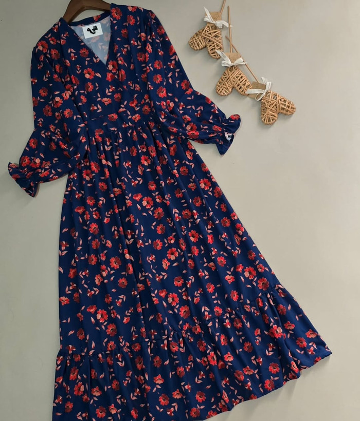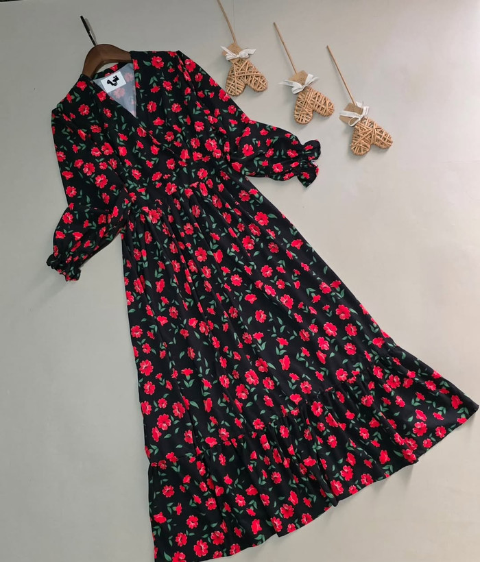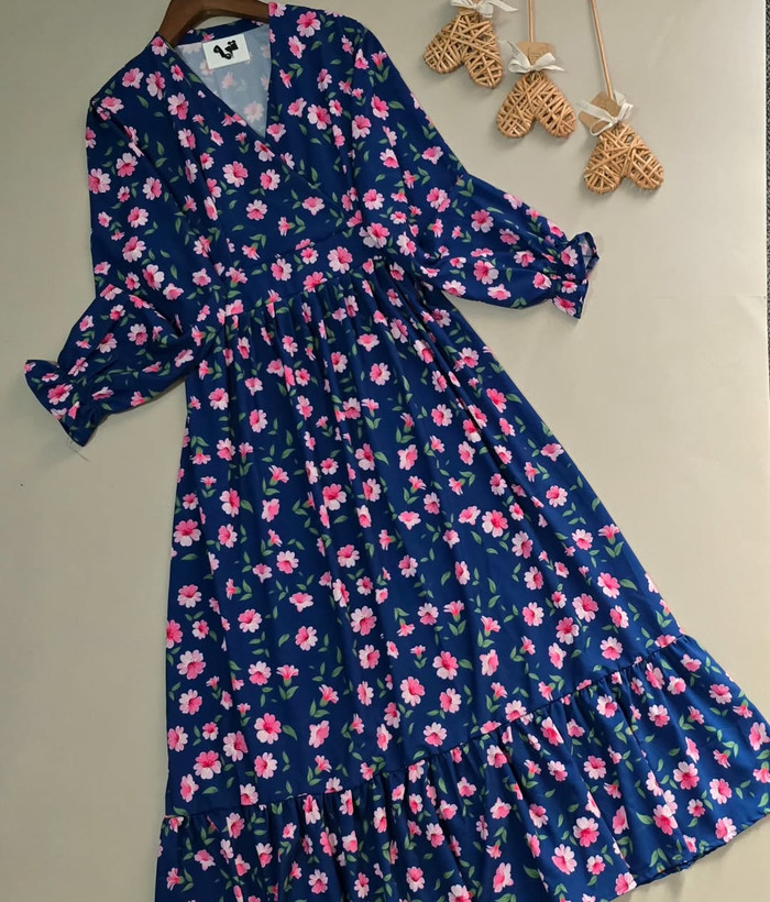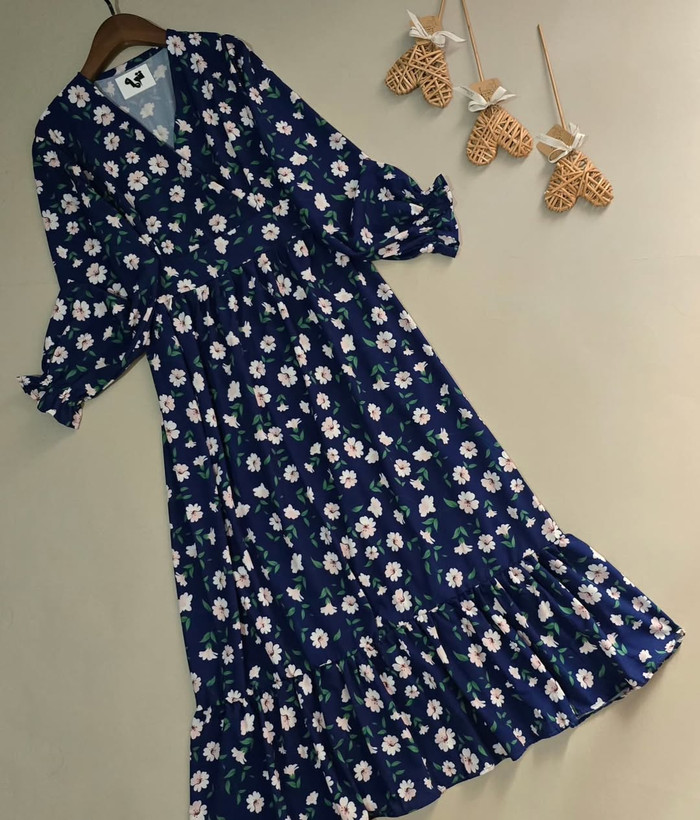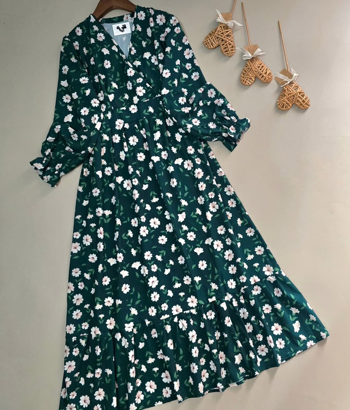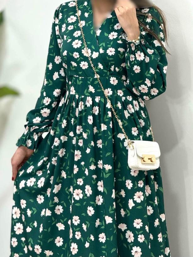 پیراهن زنانه فلور طرح بابونه یقه چپ و راستی