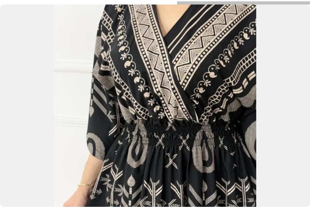 پیراهن زنانه ساحلی فلور طرح بته جقه یقه چپ و راستی