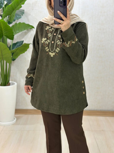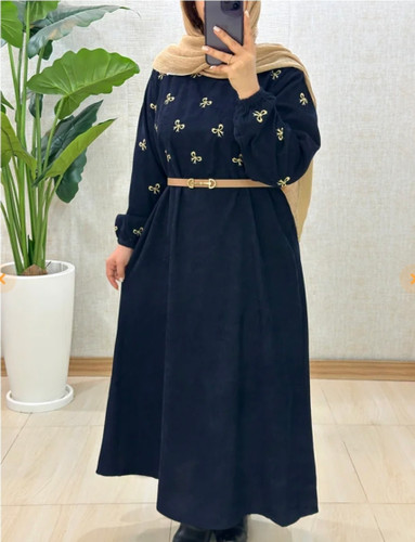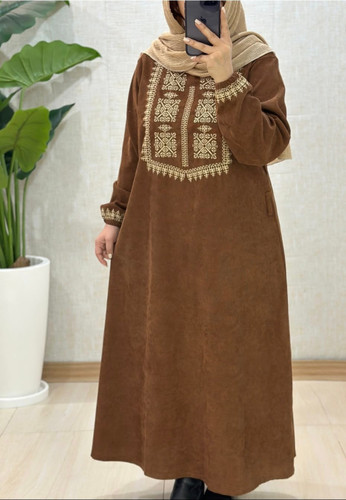 پیراهن مانتویی زنانه مخمل کبریتی طرح گلدوزی گندم