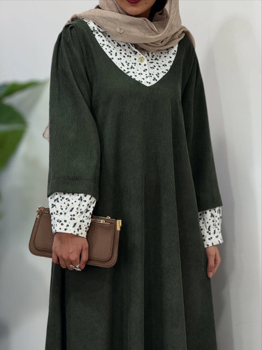 پیراهن مانتویی زنانه مخمل کبریتی طرح سوپر کلوش مهرانه