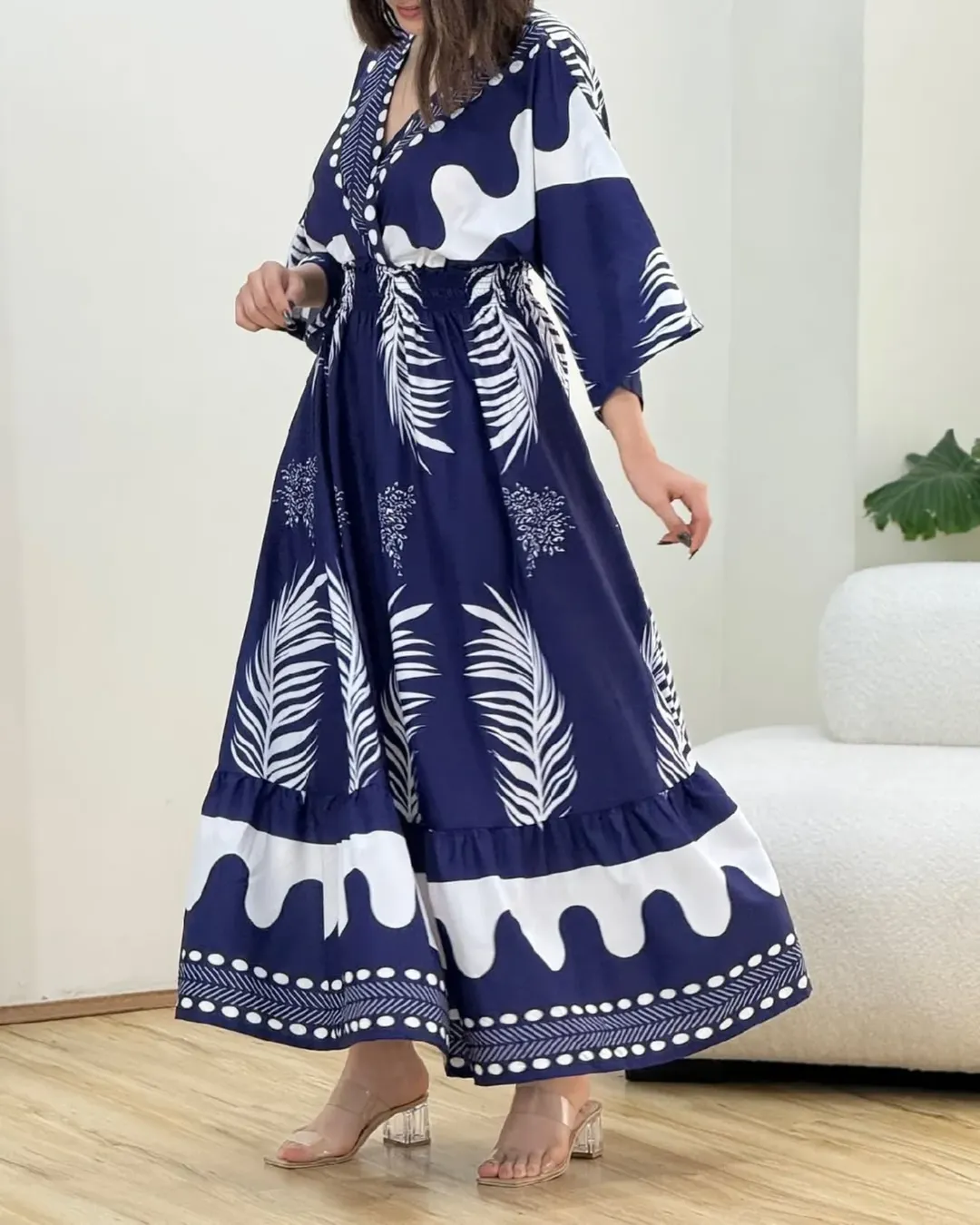 پیراهن زنانه فلور طرح گلدارجلو دکمه دارتانیا
