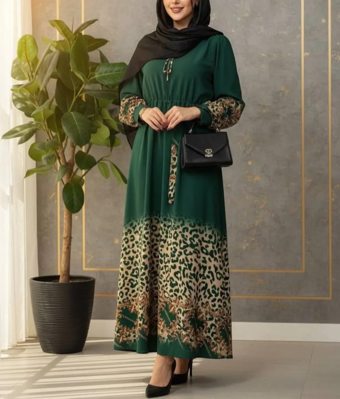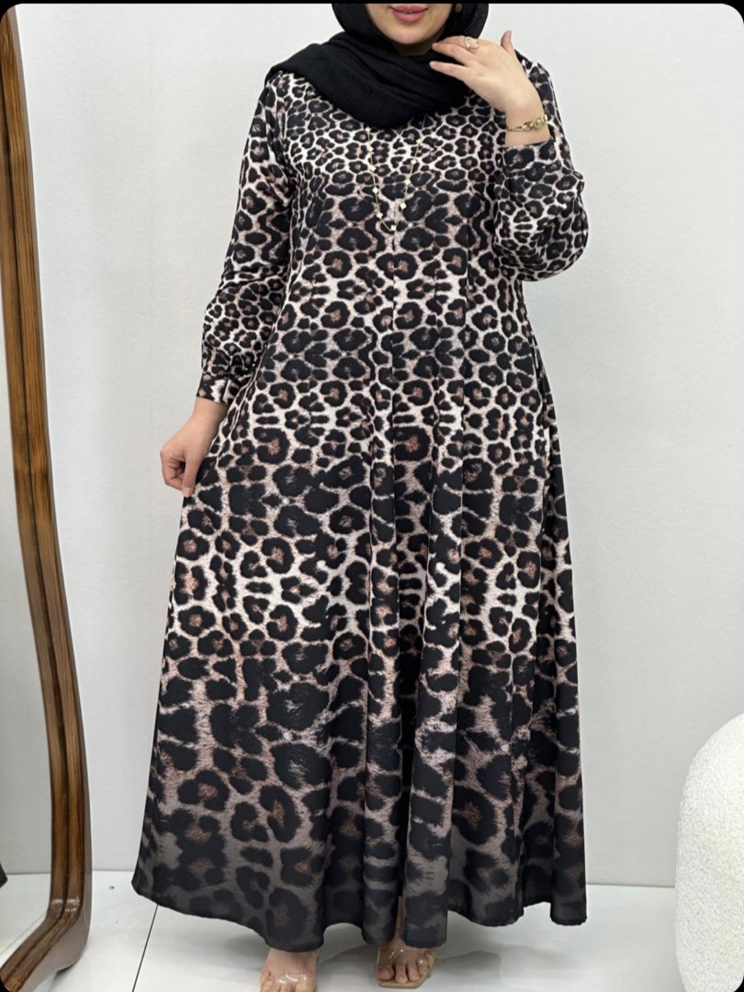 پیراهن زنانه فلور طرح حاشیه پلنگی زنجیری