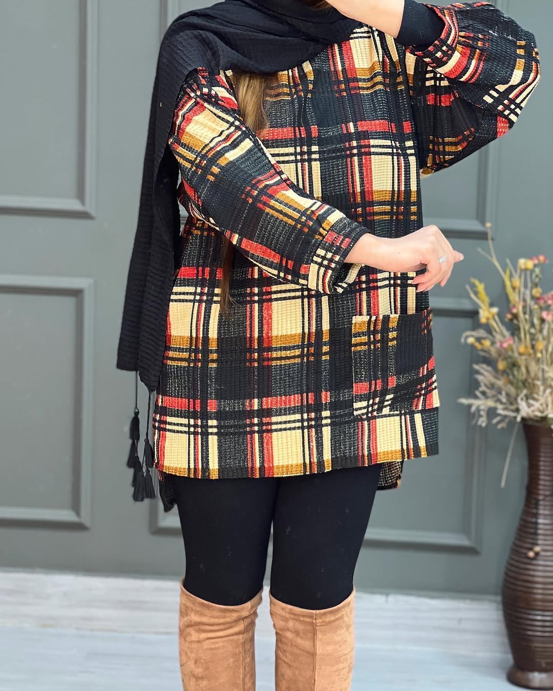 مانتو کفتان زنانه طرح چهار خونه پشمی آراد