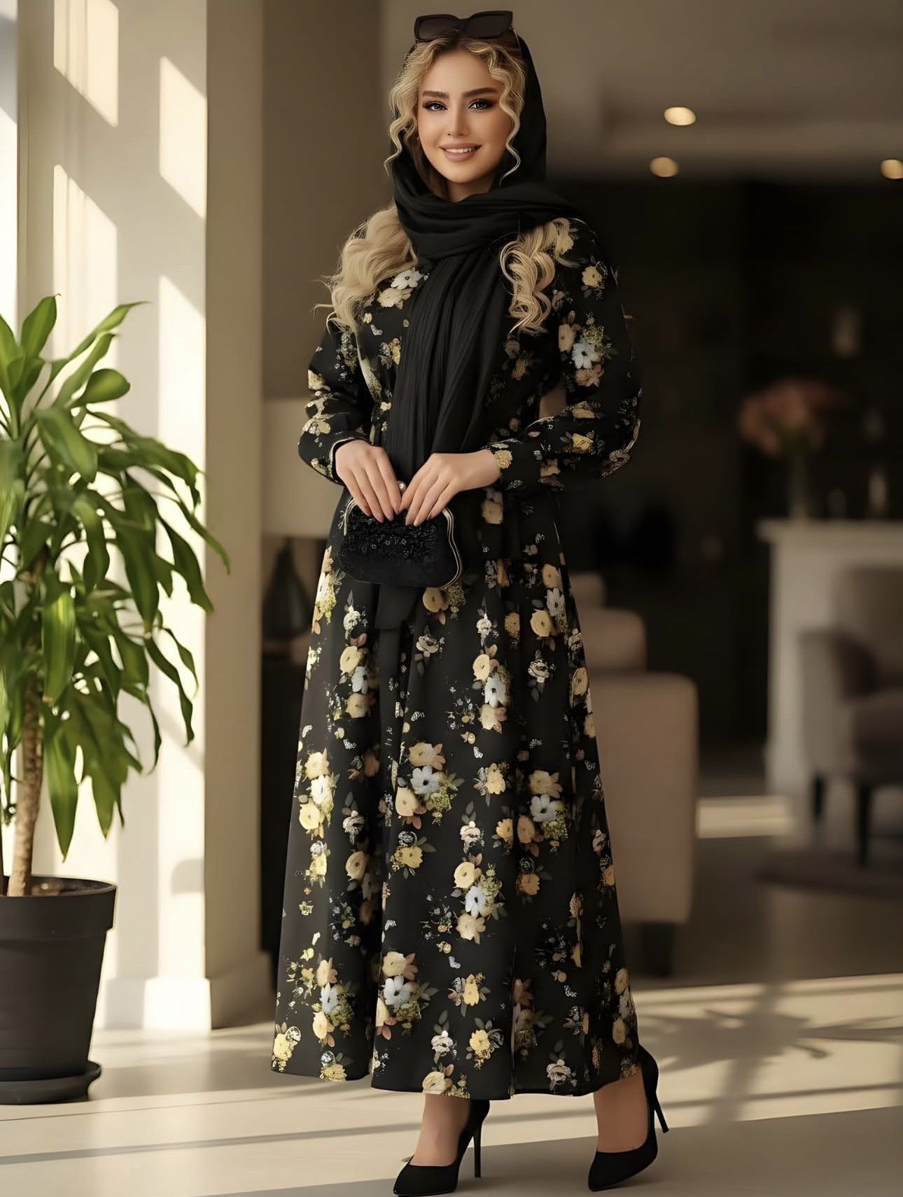 ناموجودعبای زنانه مجلسی فلور طرح ورساچ
